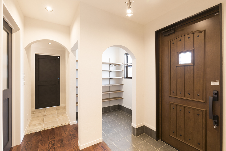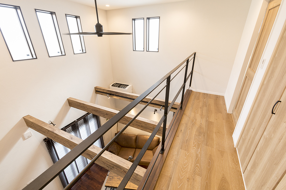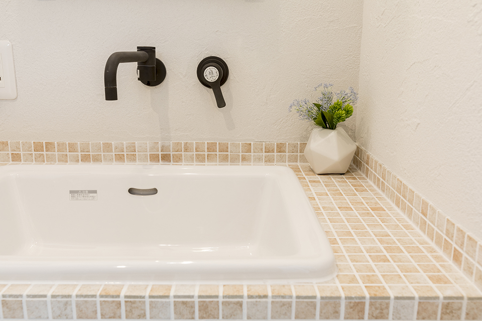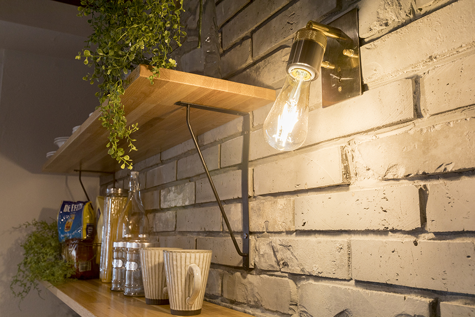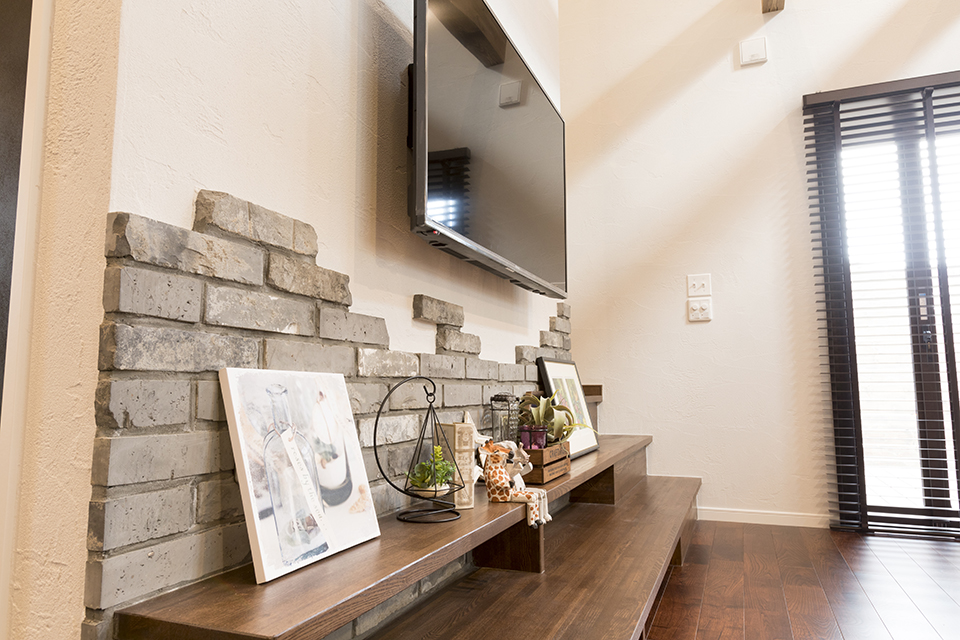 ゴツゴツした古レンガ調のブリックタイルやアイアンの家具。外国のコーヒーショップやバーを思わせる、日常と非日常がバランスよく共存したお家です。