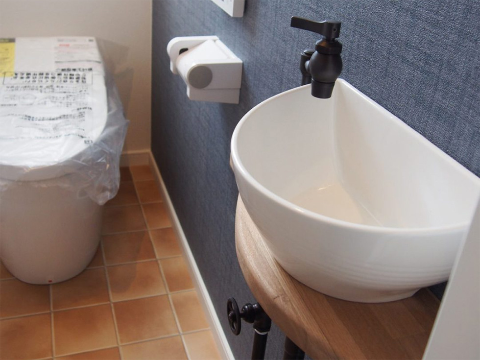 外国のプチホテルを思わせる真っ白な外壁とブラウンの洋瓦の二世帯住宅。北側は無垢のフローリングやストーンタイルなど自然素材の質感を感じられる、シンプルで落ち着いた空間に仕上がりました。
