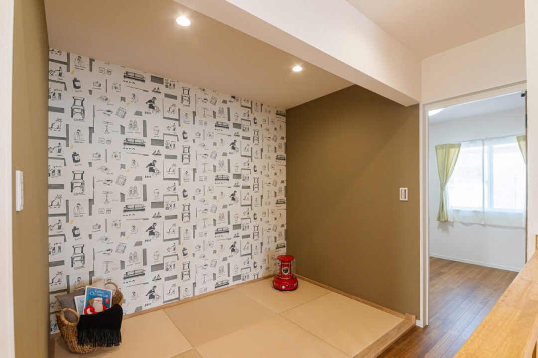スキップフロアから海を眺めるナチュラルリゾートなお家