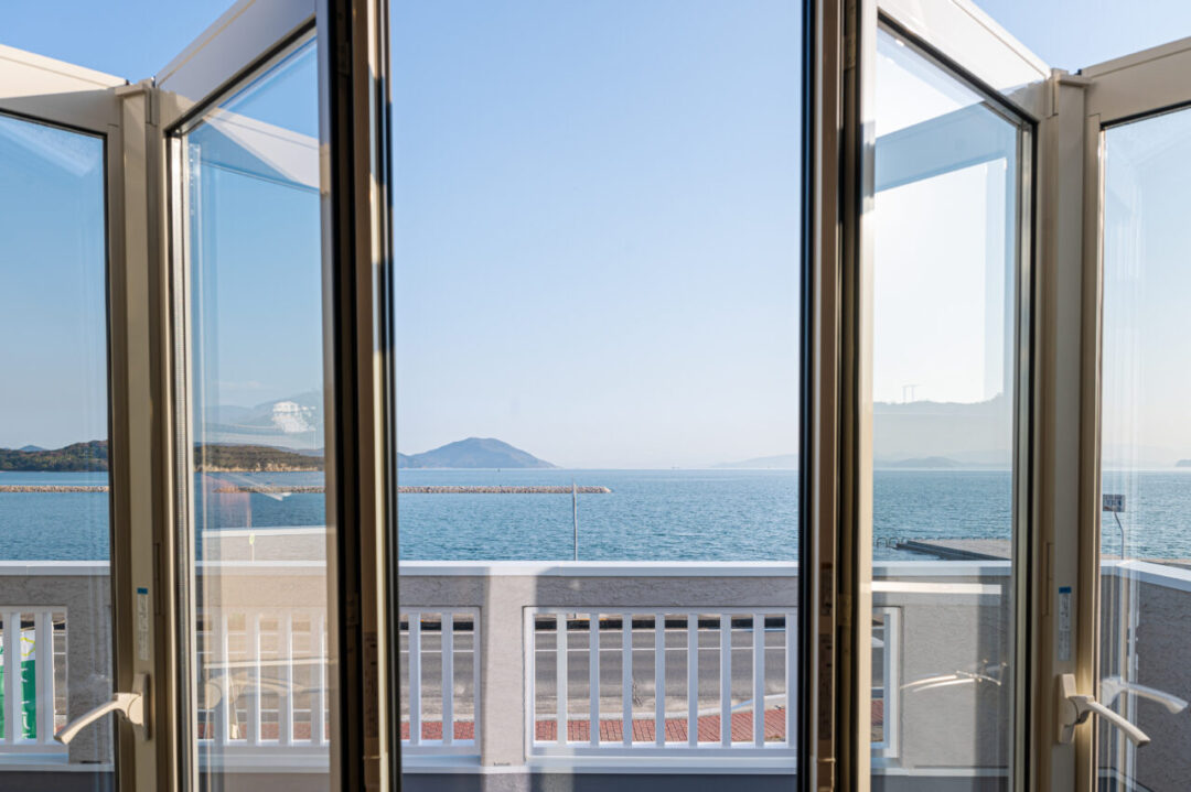 目が覚めてリビングに入ると窓から見える瀬戸内海。今日もいい天気。目覚めの珈琲を飲みながら今日は何をしようかなと予定を考える朝が心地良い。