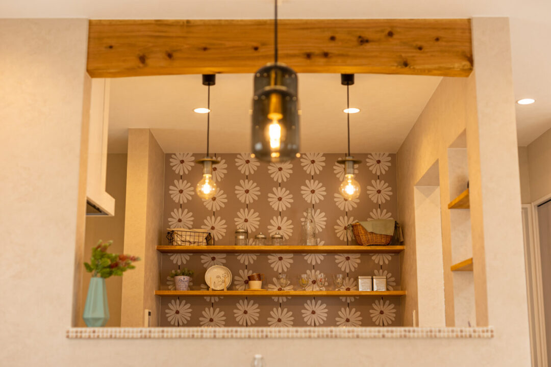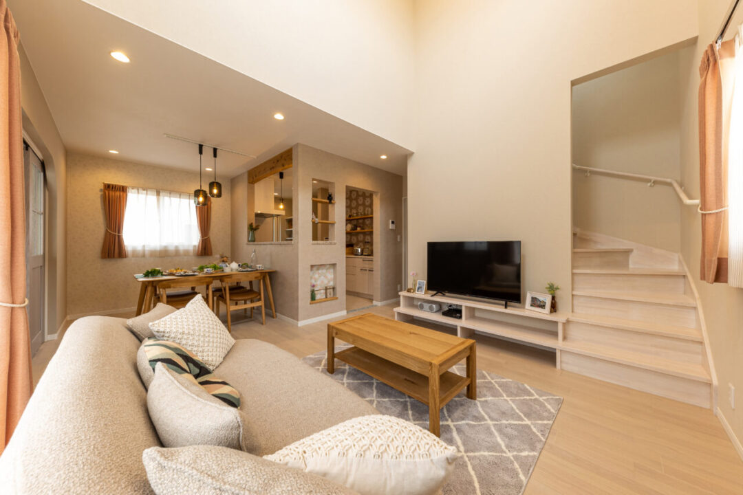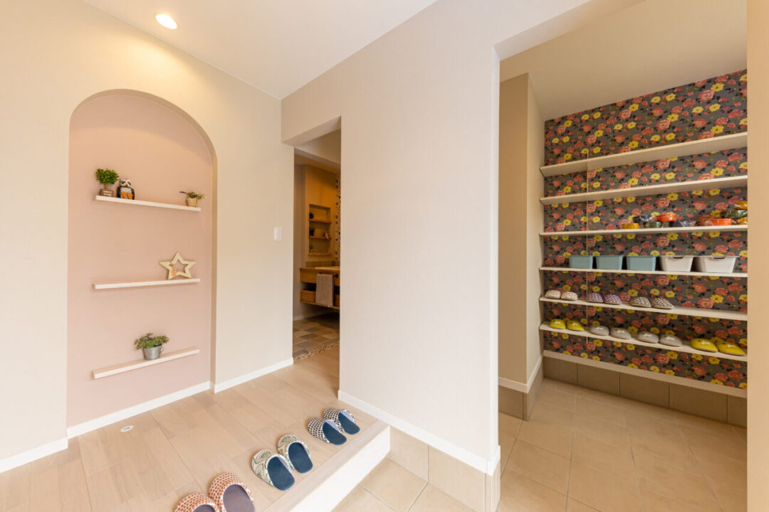 カフェラテカラーの外観に誘われて、おうちの中へ入ると優しく淡い空間に迎えられます。