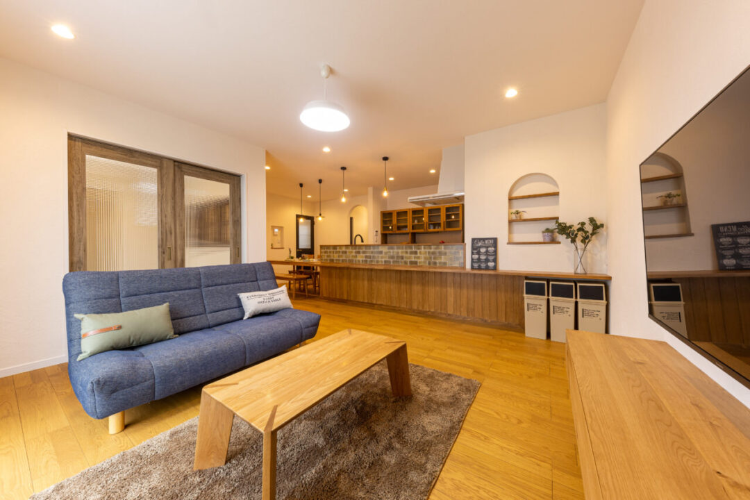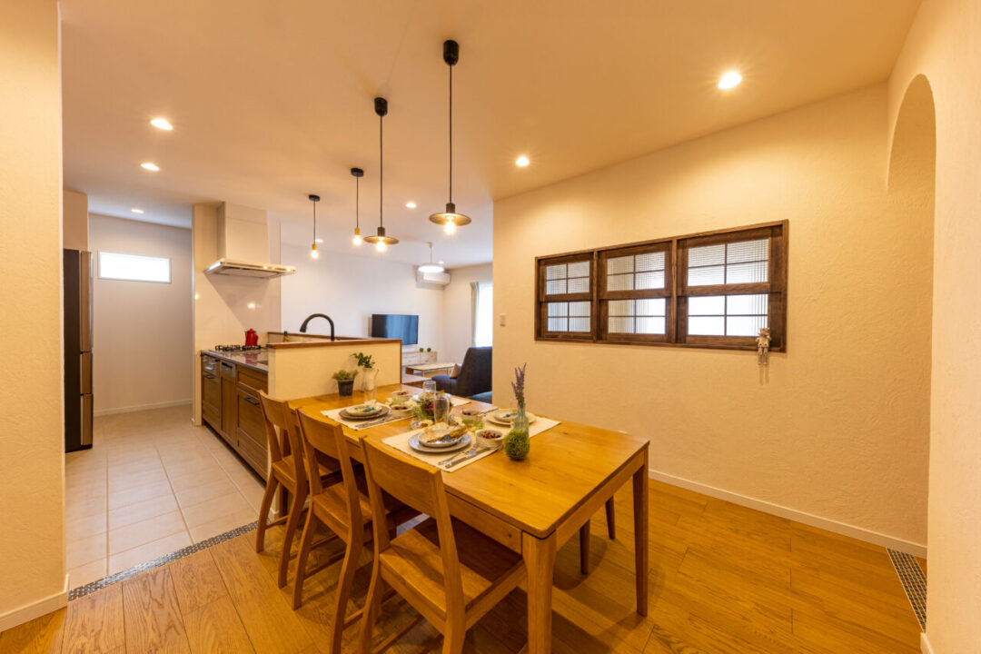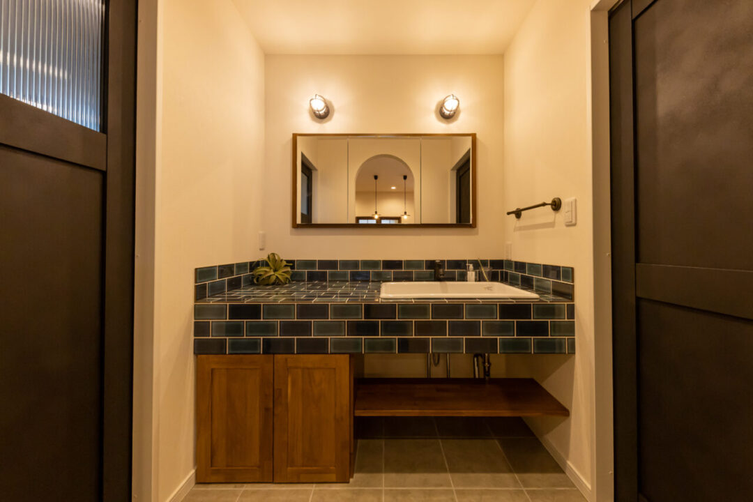 全体的にカフェスタイルでまとまったお家。 漆喰壁で室内はさらっとした空気感。 シンプルながら、所々でタイルのカラフルな色が差し色になっています。