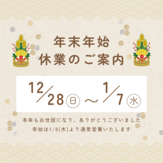 12/28(日)〜1/7(水)まで休業とさせていただきます。