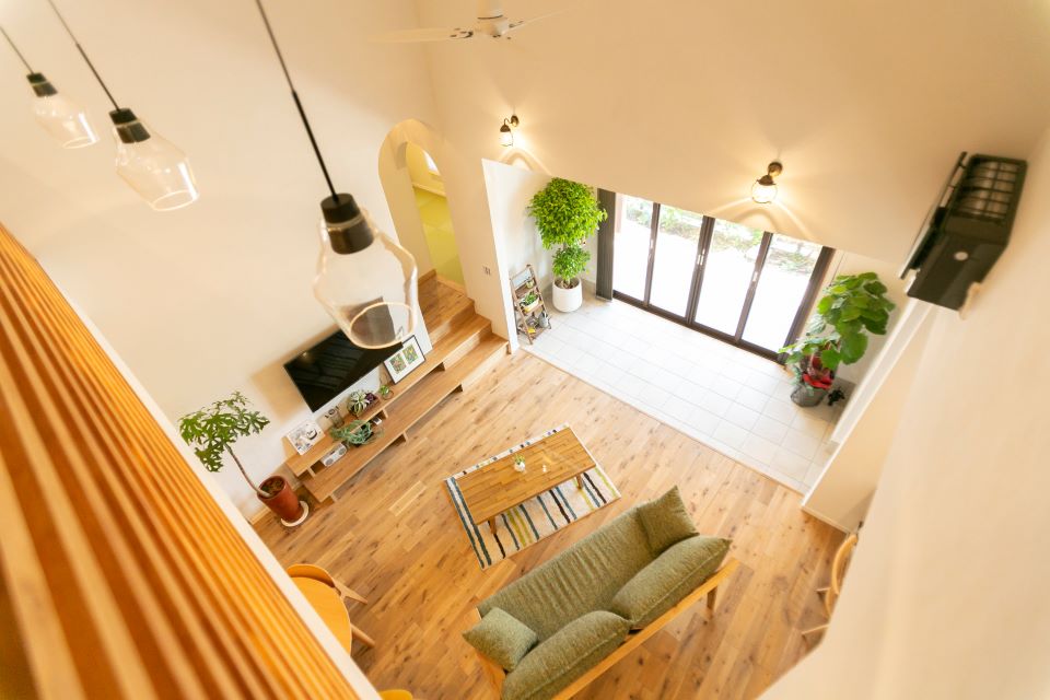 ⾃然素材をふんだんに使った住まいは、そこにいるだけで⼼癒されるやさしい空間を⽣み出します。